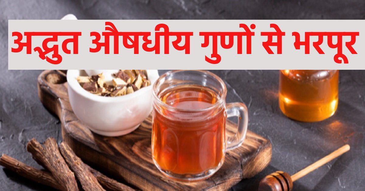 Licorice Benefits: यह देखने में पतली सी लकड़ी की छड़ी जैसी होती है लेकिन इसमें 300 से ज्यादा कंपाउड होते हैं जो सेहत के लिए संजीवनी से कम नहीं है. इसका सेवन पर असर धीरे-धीरे होता है लेकिन यह कई असाध्य बीमारियों से छुटकारा दिला सकता है. जी हां, मुलेठी की जड़ या लिकोराइस ऐसा ही करामाती हर्ब्स है. मुलेठी में एंटी-इंफ्लामेटरी, एंटी-बैक्टीरियल, एंटीवायरल गुण के साथ-साथ एंटी-कैंसर गुण भी पाया जाता है. इसमें कई तरह के प्लांट कंपाउड पाए जाते हैं जो कई बीमारियों की जड़ पर वार करते हैं. मुलेठी की जड़ को लोग आमतौर पर पेट संबंधी समस्याओं में ही इस्तेमाल करते हैं लेकिन रिसर्च के मुताबिक यह कैंसर के जोखिम को भी करने की क्षमता रखता है. आइए जानते हैं इसका बीमारियों में इस्तेमाल के बारे में…