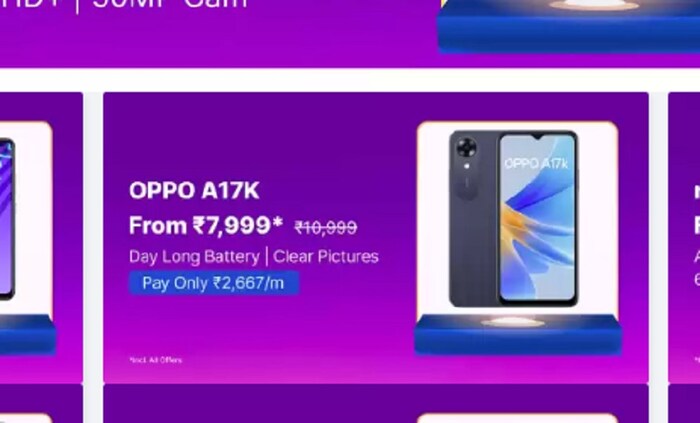 Oppo A17K को 10,000 रुपये के बजाए 7,999 रुपये में खरीदा जा सकता है. कंपनी का कहना है कि इससे काफी क्लियर पिक्चकर आती है. इस फोन को EMI पर भी खरीदा जा सकता है, जिसके लिए आपको सिर्फ 2,667 रुपये प्रति महीना देना पड़ेगा.